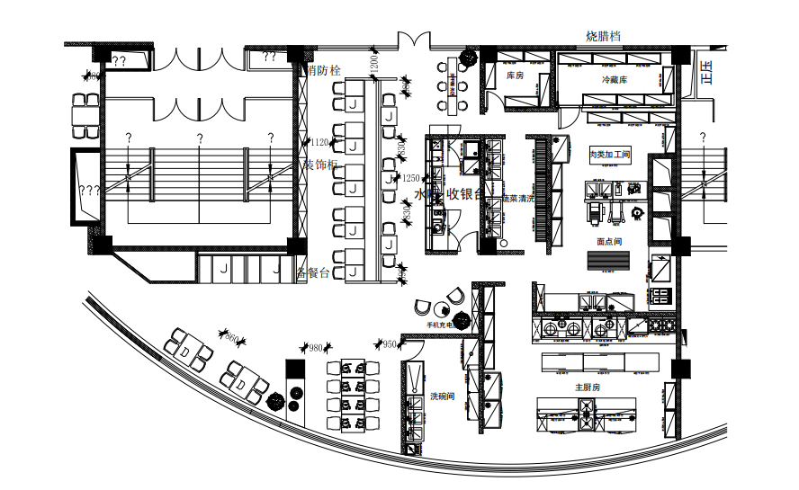使用的灶具少,灶具主要是用大锅灶煮面、熬粥,只需一两眼炒灶用来制作主食配料,或用来煮零点的面条、饺子;使用的机械设备多,如和面机、压面机、包子机、菜焰机、搅拌机等;蒸、煮、烤、炸、煎设备用得多,蒸饭柜、夹层锅、烤箱、电炸 锅、电饼铛等;主食加工间与副食加工间特点不同,主食的米饭、馒头、包子、饺子等食品大多是批量制作,批量蒸煮生产。所以,除煎炸食品外,生制与熟制可以分开区域设置。熟制区需要出餐台,生制区需要机械设备、工作台、及原料运送,传餐通道要有一定的宽度,通道要设置合理。由于经营方式、餐品类别、加工工艺、出餐产量大小差异较大,主食加工间布局与饭店芭乐视频官网下载在线播放设计自有特点。