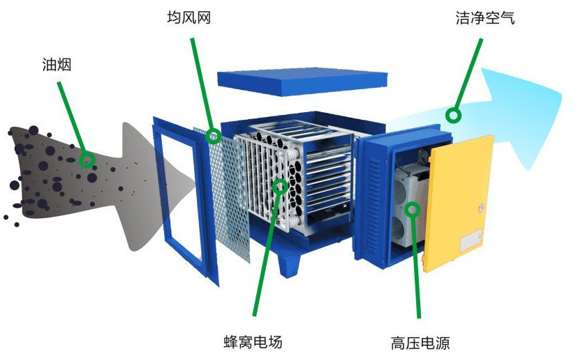 (2)由于油烟净化设备本身的输出电压过高,所以必须要先断电,然后才能进行设备的拆卸工作,切勿带电操作,避免发生意外。