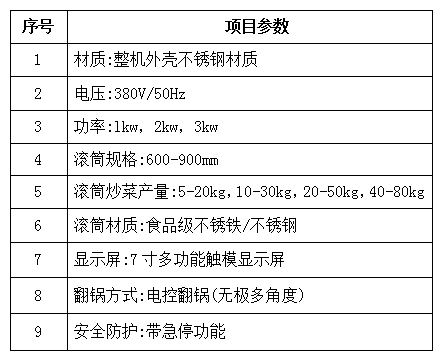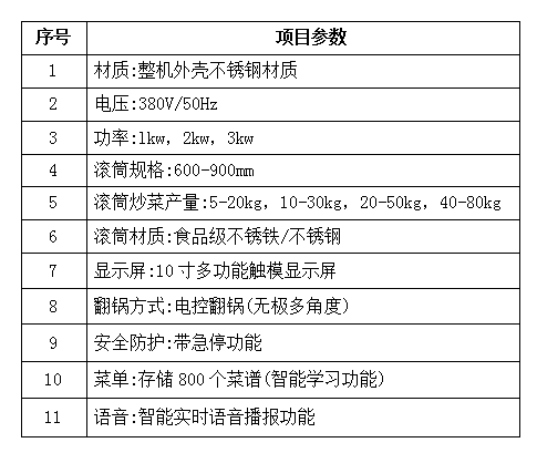 半自动GB系列(无菜谱录制、自动烹饪功能)炒菜机参数