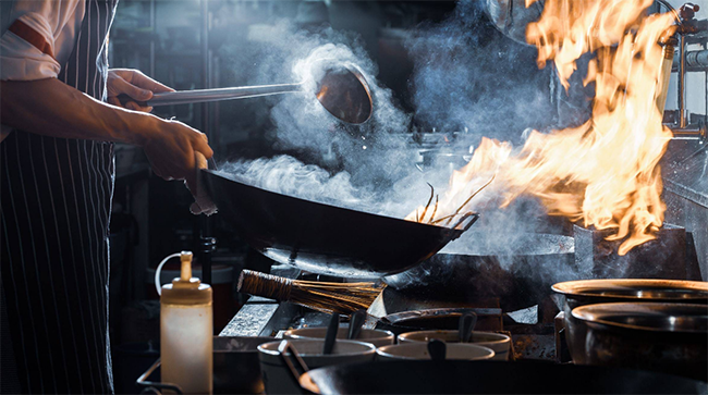 最后,将洗净的食材放入锅中时,食材上的水分会与食用油混在一起。由于此时的油温较高,高温油与水珠相接触并将热量传递给水珠,水珠会瞬间汽化产生爆炸而使油滴四溅。由于普通炒锅的受热不均匀,油滴溅落在温度较高的点位时会迅速蒸发致使锅面产生油烟。该过程可以说是产生油烟的一个高峰,并且此过程中所产生的油烟的VOCs组成非常复杂,其颗粒物的粒径分布也较前期更广,在纳米到毫米级都有分布。