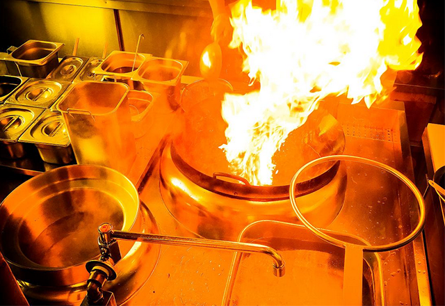 注:油锅起火时千万不要用水扑灭!因为水碰到高温油会变成“炸锅”,使油火到处飞溅。