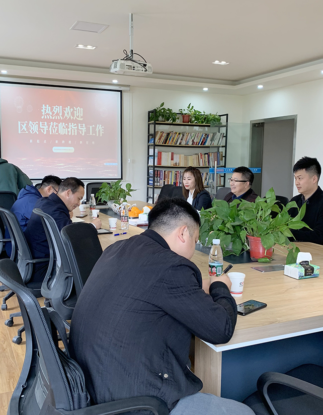 在会谈中,袁总向各位来访的领导介绍了公司的主要业务以及经营情况。区领导在听取了袁总的介绍后,对公司的工作给与了肯定,并且对相关工作进行了指导。